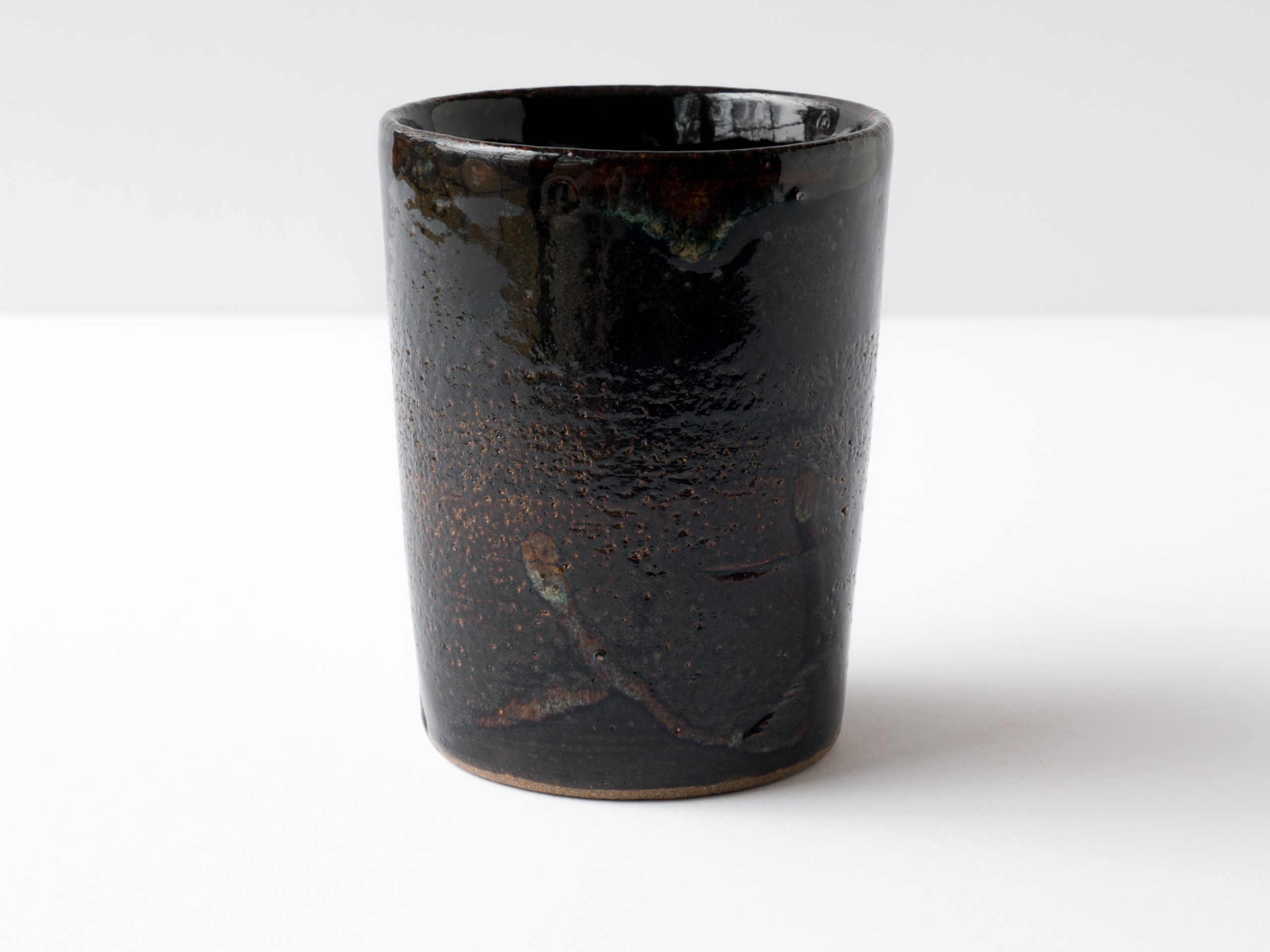 Wheel thrown brown cup. Sized well for water or a cocktail. Waterfall brown glaze.