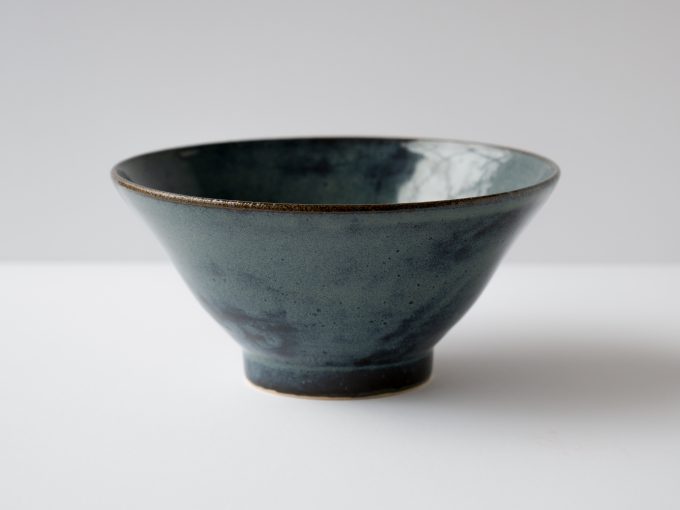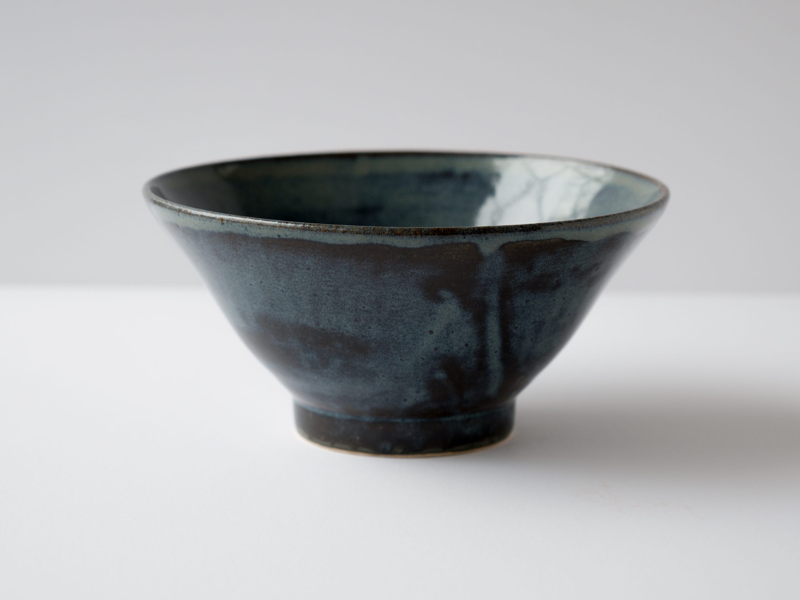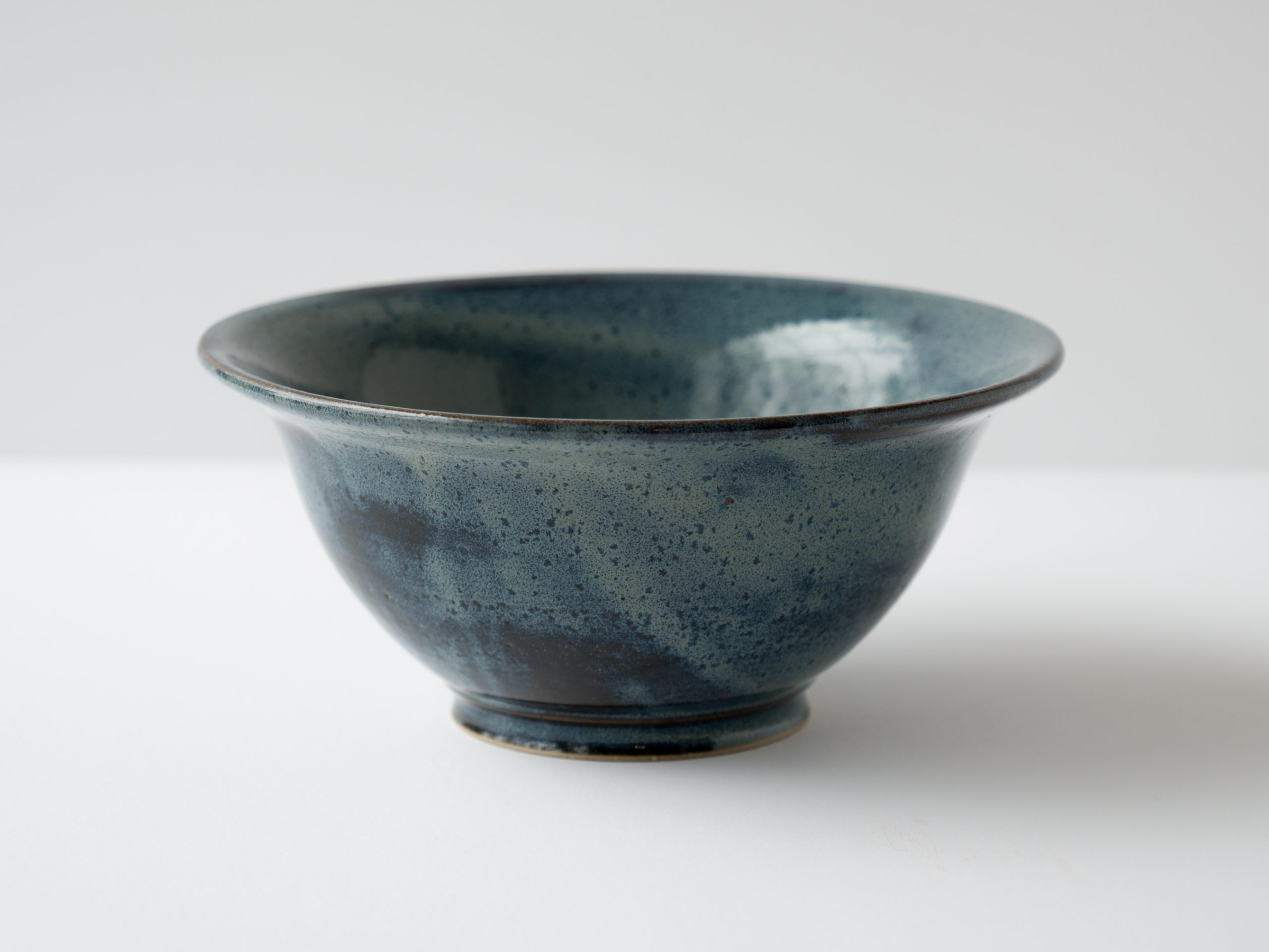 Set of two handmade ceramic bowls. Sized well for salad, noodles, soups, or a big helping of Lucky Charms. This set includes two stackable bowls that with a variegated blue glaze.