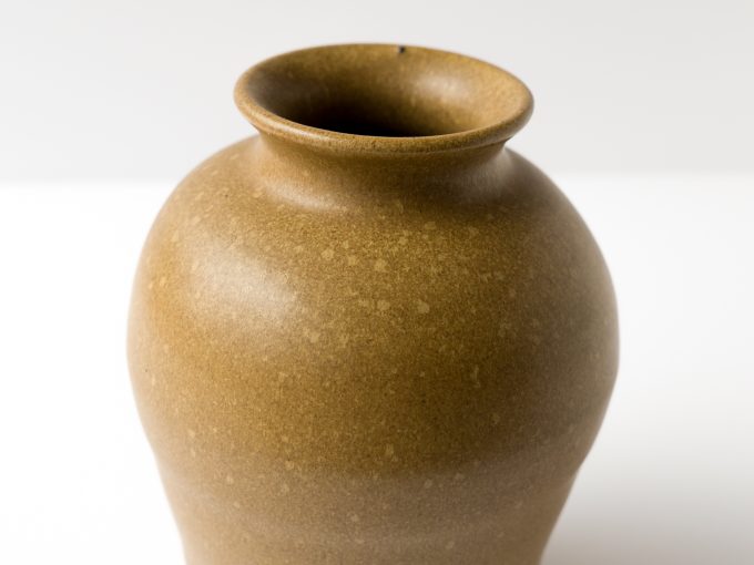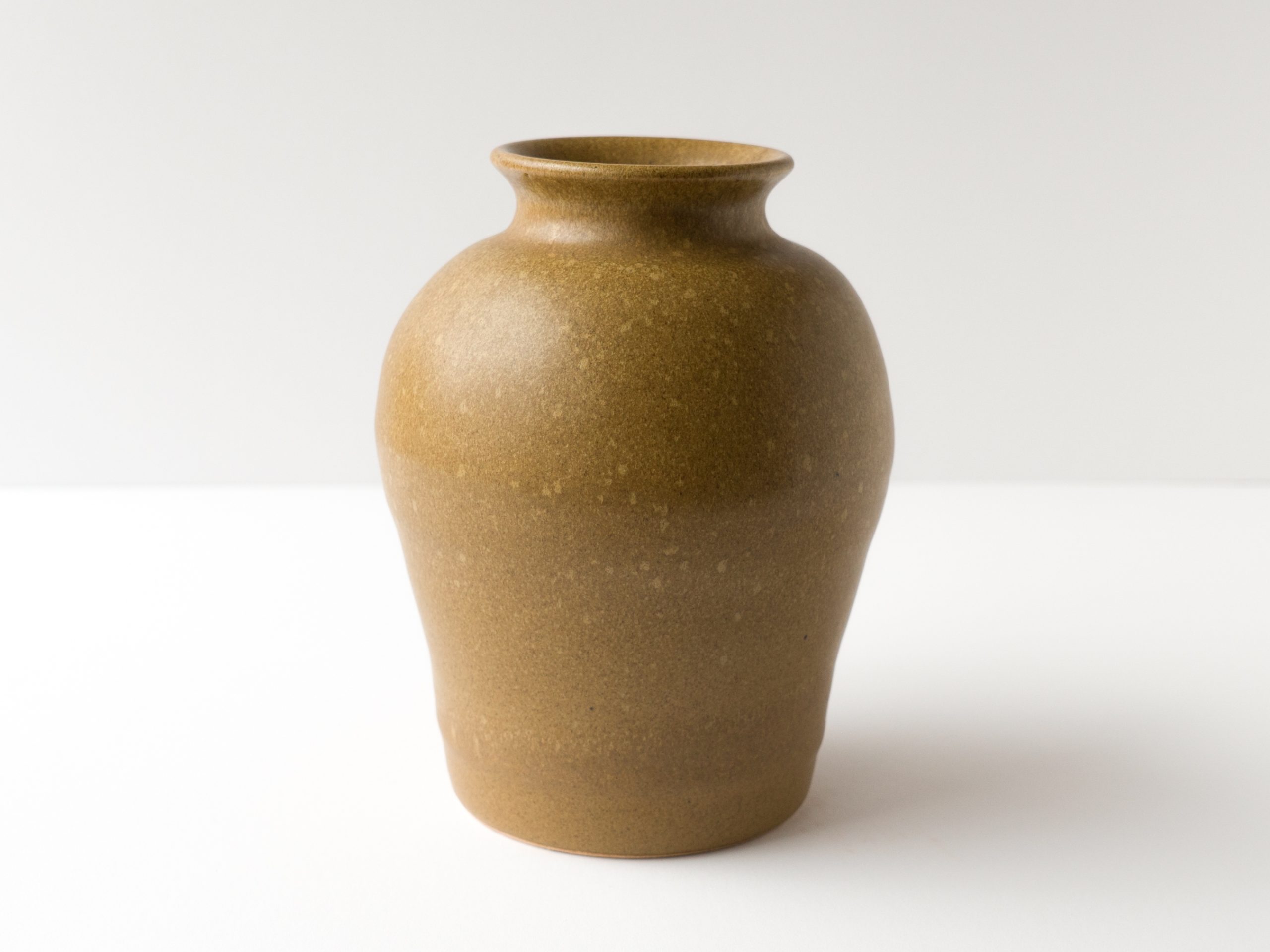 Wheel thrown vase. 3″ opening is sized well for flowers. Nutmeg red glaze.