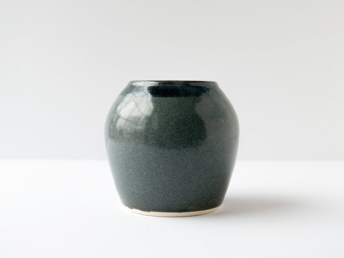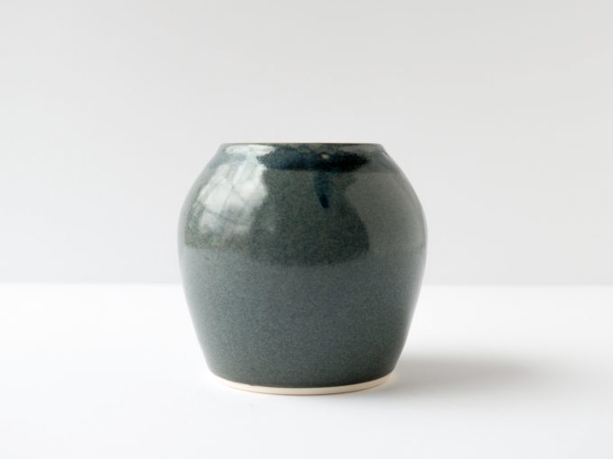 Wheel thrown flower or plant pot. Variegated blue glaze.