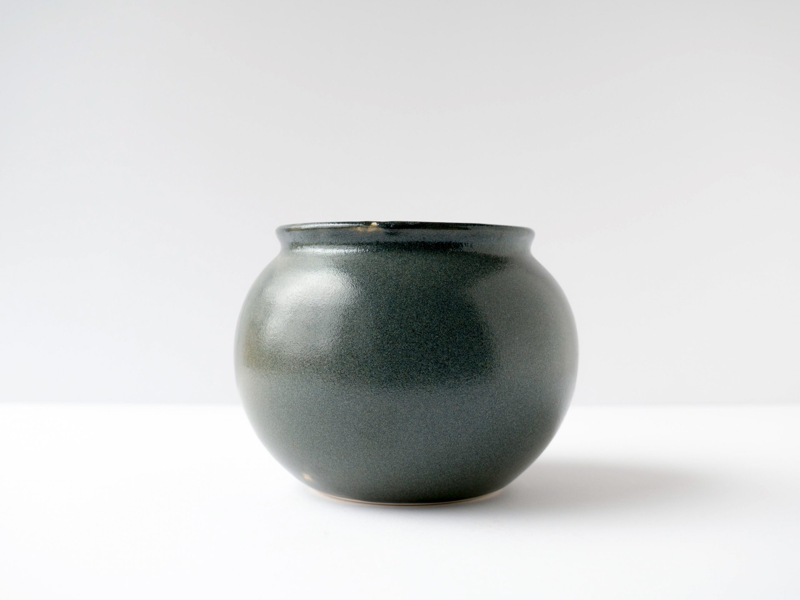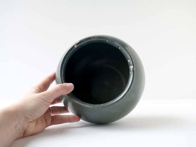 Wheel thrown flower or plant pot. Variegated blue glaze. Slight blemishes in glaze shown in photos.