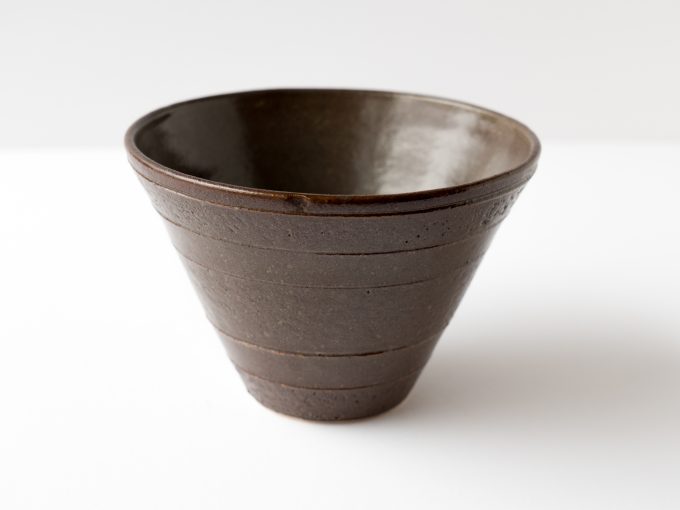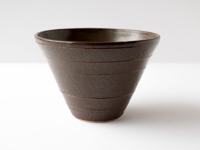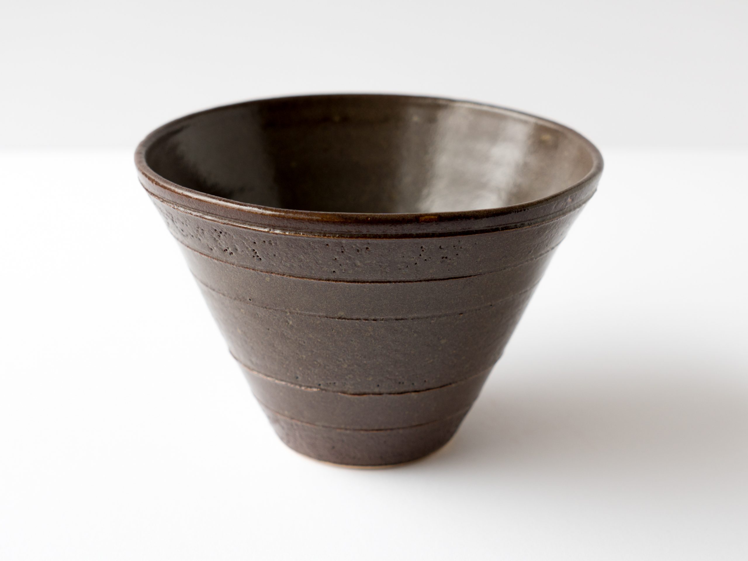 Wheel thrown bowl sized well for chips or popcorn. Variegated blue glaze.