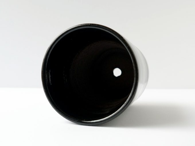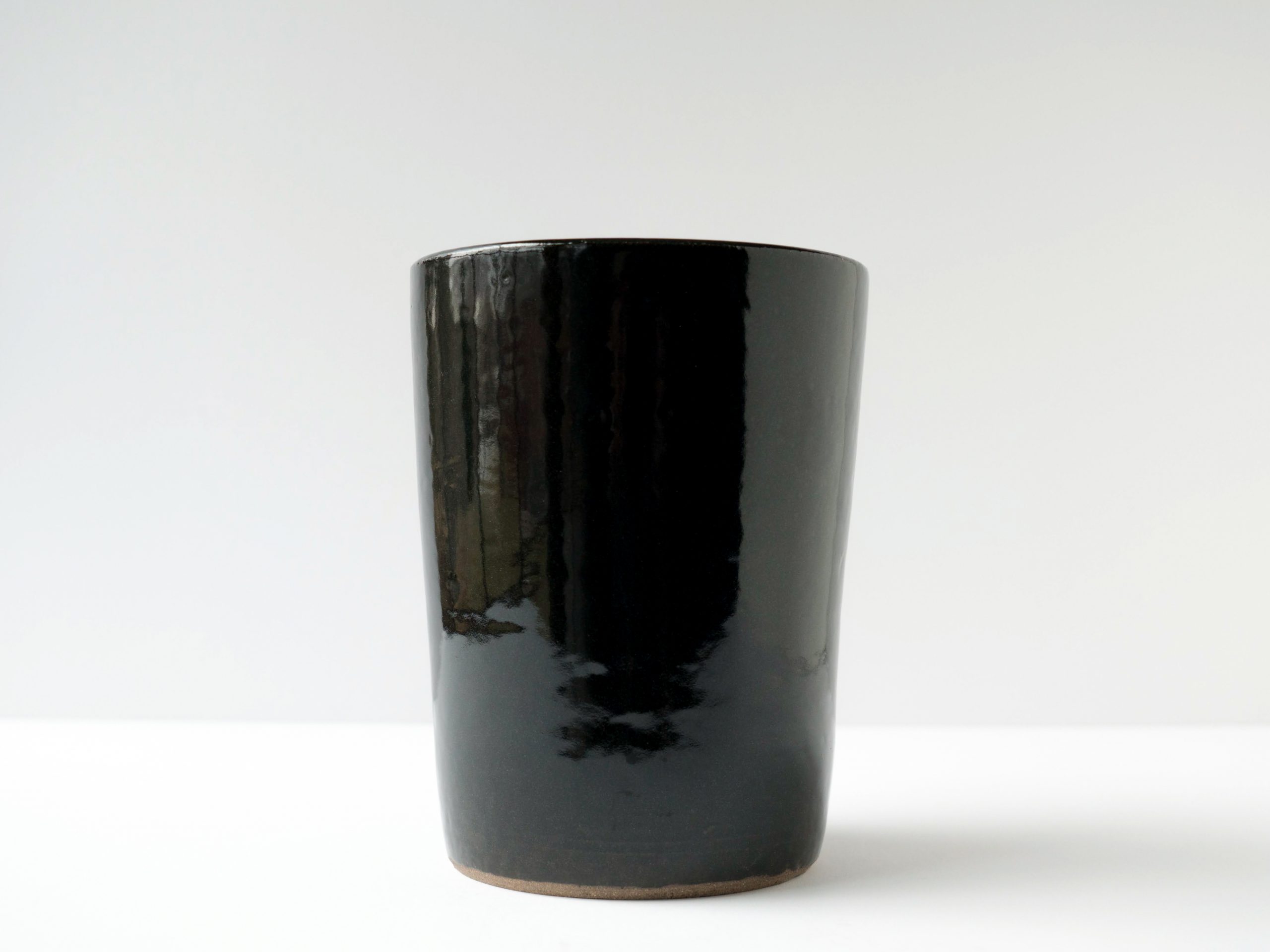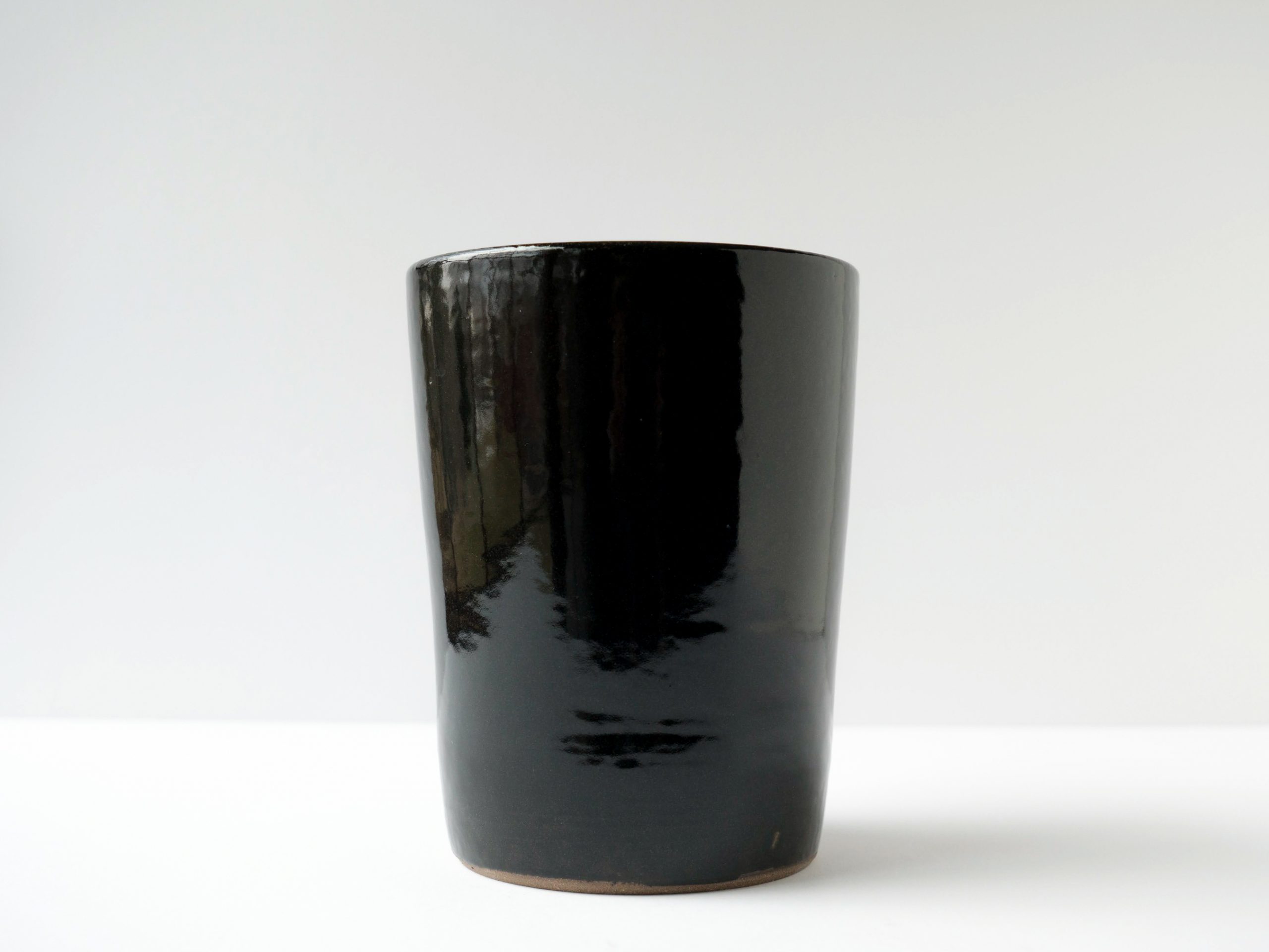 Wheel thrown black vase or flower pot. Licorice glaze.