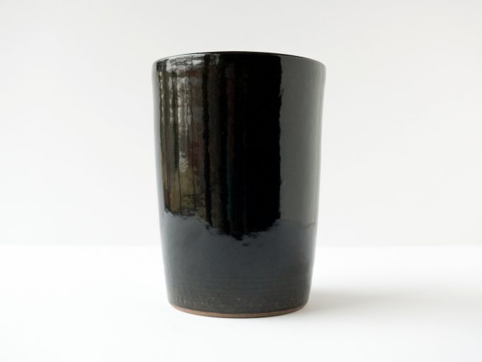 Wheel thrown black vase or flower pot. Licorice glaze.