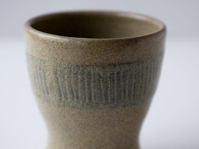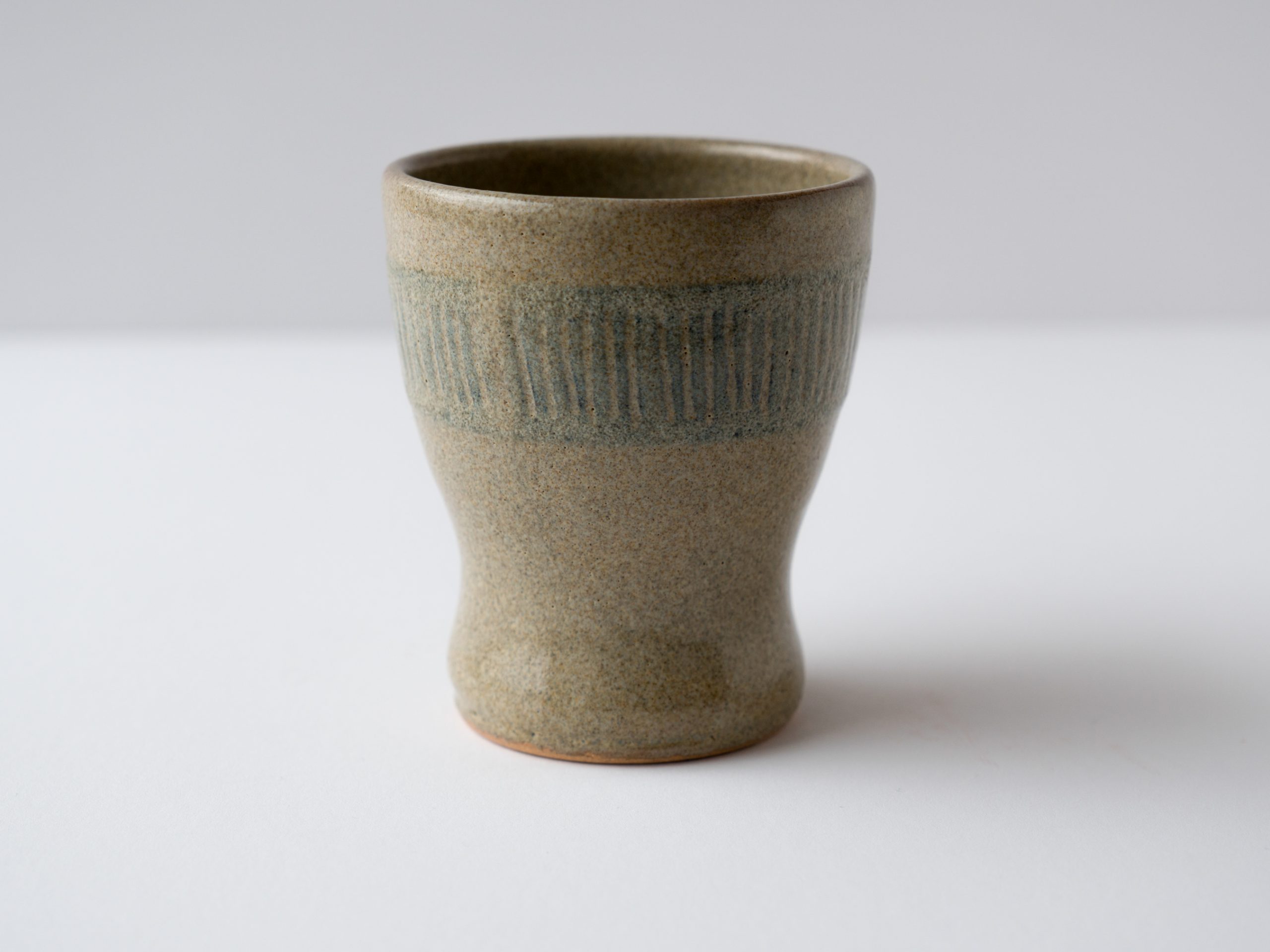 Wheel thrown brown cup. Sized well for water or a cocktail. Waxwing brown glaze with hand etched line design.