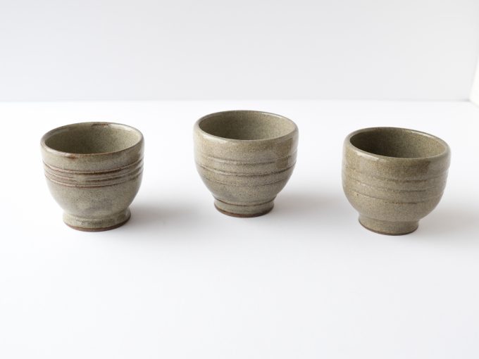 Set of three small handmade ceramic bowls sized well for snacks or sauces. Waxwing brown glaze.